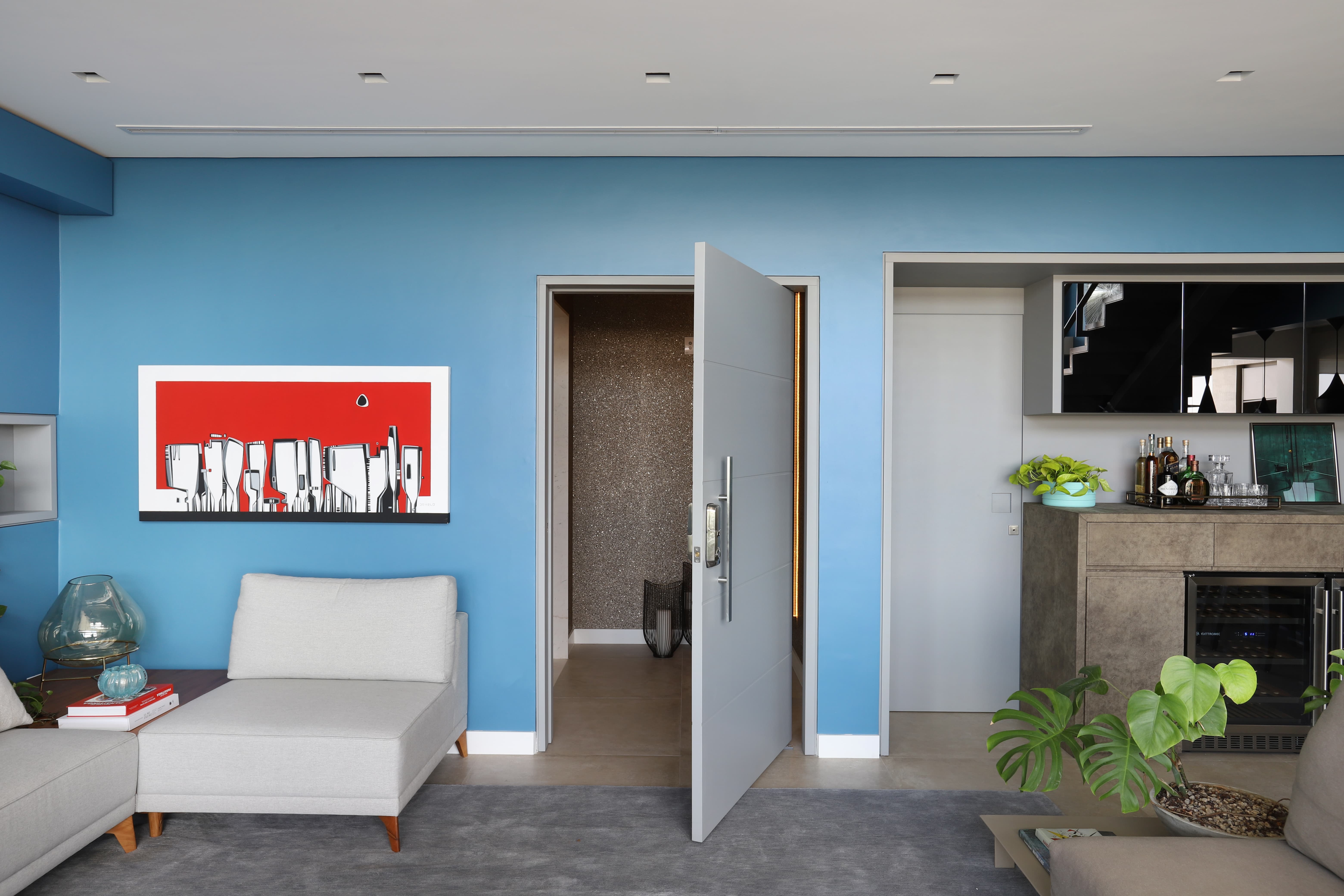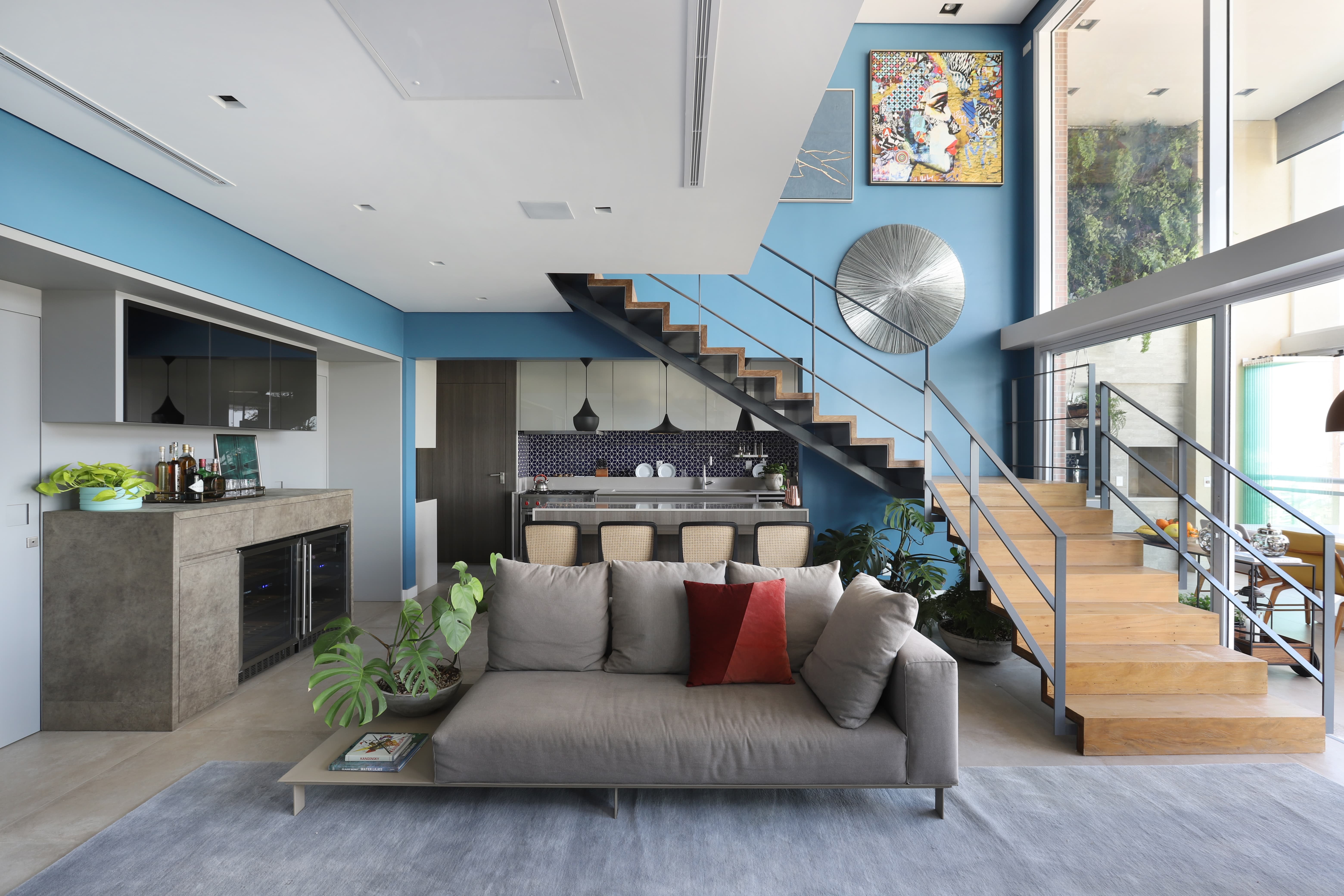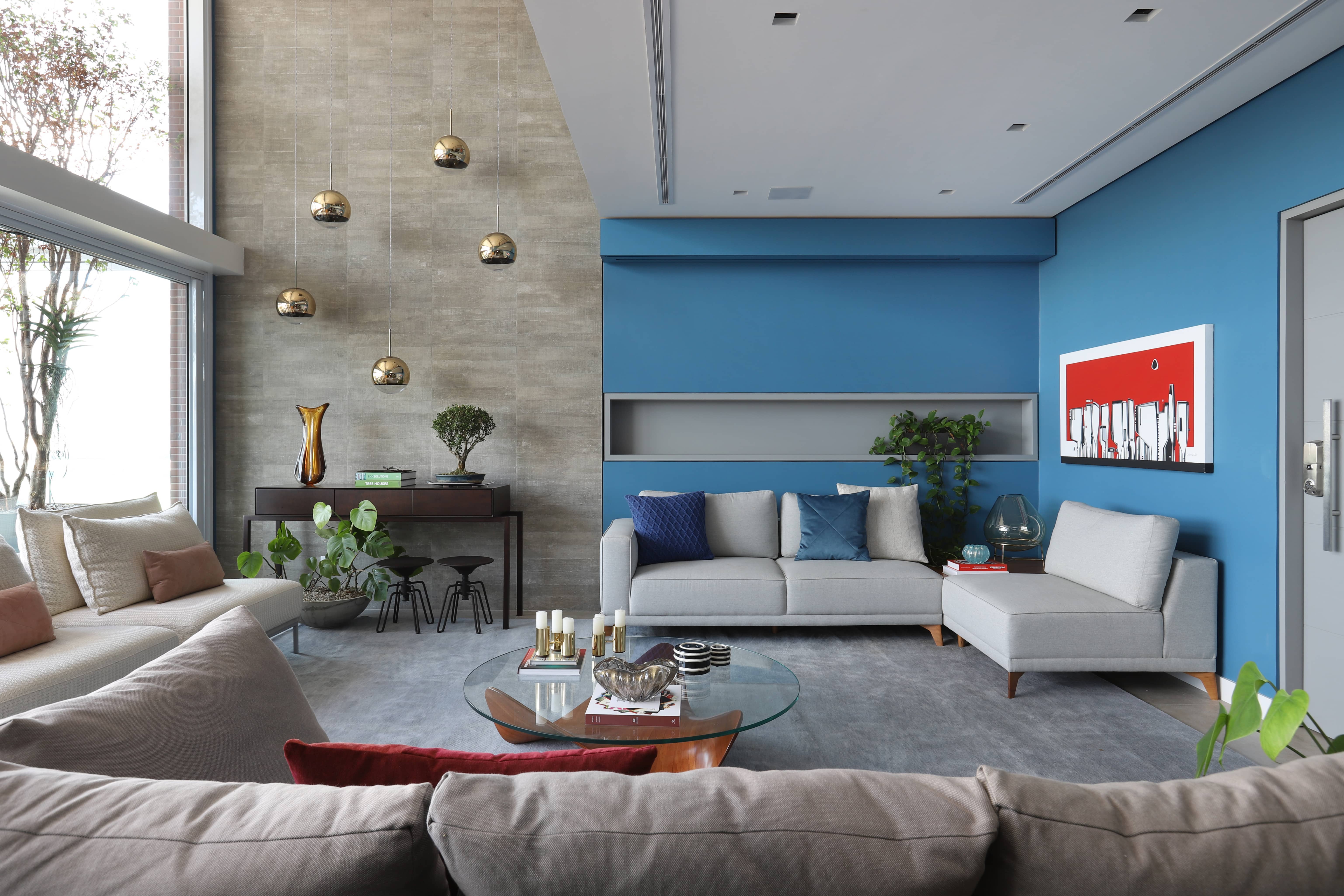 - O uso de cores vibrantes em contraste com tons neutros traz equilíbrio e personalidade.